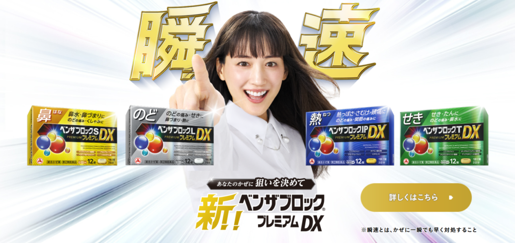 | ベンザブロック プレミアムDX | 「鼻」、「のど」、「熱」、「咳」に特化した商品がラインナップ。 | 自分に合ったお薬の選択に注意 |